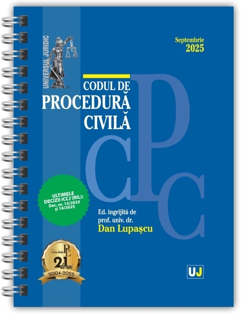 Comandă online cartea "Codul de procedură civilă : septembrie 2025" la 60,90 lei isbn 9786063917905 scrisă de ed. îngrijită de prof. univ. dr. Dan Lupaşcu , Dan Lupascu, tiparită la editura Universul Juridic în anul 2025. Cartea poate fi livrată în circa 2 zile cu plata ramburs sau online cu cardul.