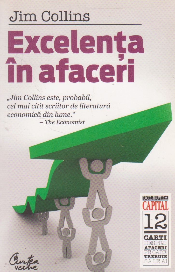 JIM COLLINS este consultant în afaceri şi mentor pentru lideri din toate sectoarele corporatiste şi sociale; susţine conferinţe pe tema sustenabilităţii şi creşterii companiilor. între 1988 şi 1995 a fost membru al Stanford University Graduate School of Business, unde a primit Premiul pentru Profesorat Remarcabil în 1992. Continuă să predea ca profesor invitat la University of Virginia. La începuturile carierei sale a lucrat pentru companii precum McKinsey & Company sau Hewlett-Packard. în prezent îşi petrece majoritatea timpului în laboratorul său de management din Boulder, Colorado, unde desfăşoară studii şi cercetări cu lideri din întreaga lume. A fost consultant sau mentor pentru mai bine de 100 de organizaţii din America de Nord, Europa, Australia şi America de Sud, între care: Hewlett-Packard, Johnson & Johnson, Microsoft, Cargill, Merrill Lynch, Rockwell, Dun & Bradstreet, Fannie Mae, Sun International etc. Lucrările sale au fost comentate şi apreciate în numeroase publicaţii, printre care: Inc., The Economist, Fortune, Harvard Business Review, Across the Board, International Business etc. A apărut, de asemenea, în programul de televiziune The Creative Spirit, difuzat de PBS. De acelaşi autor: Built to Last (coautor, 1994), Beyond Entrepreneurship: Turning Your Business into an Enduring Great Company (coautor, 1995), Good to Great and the Social Sectors (2005), How the Mighty Fall: And Why Some Companies Never Give in (2009). Publică articole în Harvard Business Review, Business Week, Fortune. Excelenţa în afaceri s-a aflat în fruntea bestsellerurilor de pe listele furnizate de reviste precum New York Times, Wall Street şi Business Week, fiind vândută în peste 3 milioane de exemplare şi tradusă în peste 35 de limbi. |