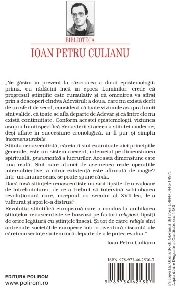 Revolutia stiintifica europeana care a condus la anihilarea stiintelor renascentiste se bazeaza pe factori religiosi, lipsiti de orice legatura cu stiintele insesi. Si tot de catre religie sint antrenate societatile europene intr-o aventura riscanta ale carei consecinte sintem inca departe de a le putea evalua.” (Ioan Petru Culianu)