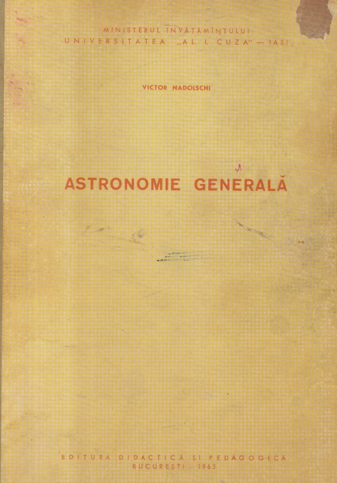 Comandă online cartea "Astronomie generala (Nadolschi, Editie 1963)" la 210,40 lei scrisă de Victor Nadolschi, tiparită la editura Didactica si Pedagogica în anul 1963 cu un număr de 447 pagini. cu plata ramburs sau online cu cardul. Momentan titlul "Astronomie generala (Nadolschi, Editie 1963)" nu este disponibil însa vă puteți înscrie pentru a fi notificat în momenul reaprovizionarii.