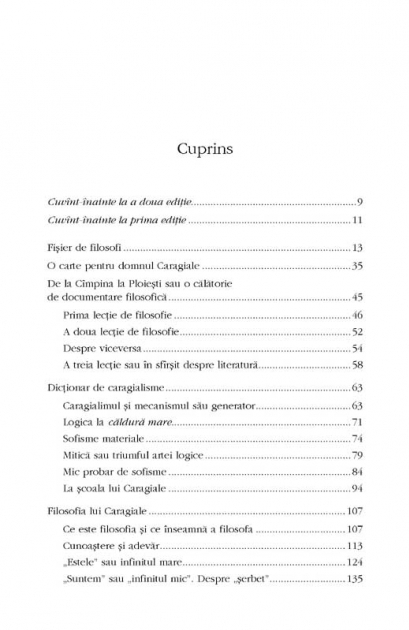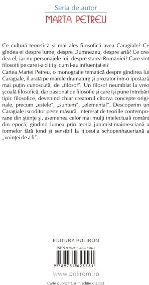 Editia a II-a revazuta si adaugita O importanta culegere de eseuri si studii despre scrierile lui Caragiale, analizate dintr-o perspectiva inedita. Ce cultura teoretica si mai ales filosofica avea Caragiale? Ce gindea el despre lume, despre Dumnezeu, despre arta? Ce credea el, iar nu personajele lui, despre starea Romaniei? Care sint filosofii pe care i-a citit si cum l-au influentat ei? Cartea Martei Petreu, o monografie tematica despre gindirea lui Caragiale, il arata pe marele dramaturg si prozator intr-o ipostaza mai putin cunoscuta, de „filosof”. Un filosof neumblat la vreo scoala filosofica, dar pasionat de filosofie si care isi pune intrebari tipic filosofice, devenind chiar creatorul citorva concepte originale, precum „estele”, „suntem”, „elemental”. Descoperim un Caragiale iscoditor peste masura, interesat de teoriile contemporane din stiinte si, asemenea celor mai multi intelectuali romani din epoca, gindind lumea prin teoria junimist-maioresciana a formelor fara fond si sensibil la filosofia schopenhaueriana a „vointei de a fi”.