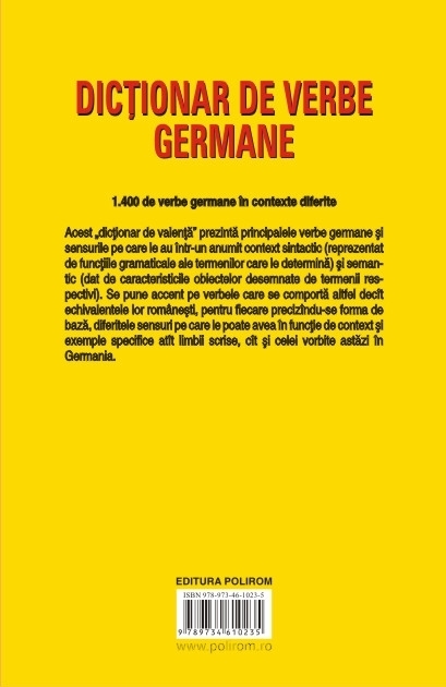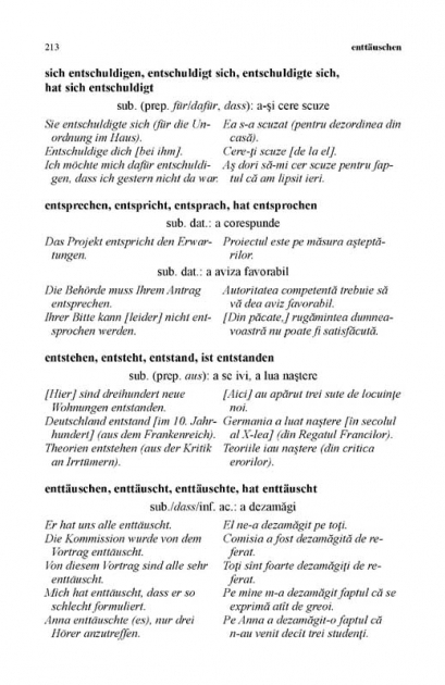 (dat de caracteristicile obiectelor desemnate de termenii respectivi). Se pune accent pe verbele care se comporta altfel decit echivalentele lor romanesti, pentru fiecare precizindu-se forma de baza, diferitele sensuri pe care le poate avea in functie de context si exemple specifice atit limbii scrise, cit si celei vorbite astazi in Germania.