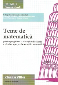 Comandă online cartea "Teme de matematica pentru pregatirea la clasa si individuala a elevilor spre performanta in matematica, clasa a VIII-a 2012-2013 semestrul I" la 14,80 lei isbn 9786065354074 scrisă de Gheorghe Cristescu , Daniel Petriceanu , Georgeta Alexandrescu Petrus Alexandrescu, tiparită la editura Nomina. cu plata ramburs sau online cu cardul. Momentan titlul "Teme de matematica pentru pregatirea la clasa si individuala a elevilor spre performanta in matematica, clasa a VIII-a 2012-2013 semestrul I" nu este disponibil însa vă puteți înscrie pentru a fi notificat în momenul reaprovizionarii.