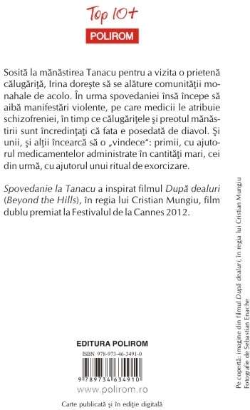 Spovedanie la Tanacu a inspirat filmul Dupa dealuri (Beyond the Hills), in regia lui Cristian Mungiu, film dublu premiat la Festivalul de la Cannes 2012. Sosita la manastirea Tanacu pentru a vizita o prietena calugarita, Irina doreste sa se alature comunitatii monahale de acolo. In urma spovedaniei insa incepe sa aiba manifestari violente, pe care medicii le atribuie schizofreniei, in timp ce calugaritele si preotul manastirii sint incredintati ca fata e posedata de diavol. Si unii, si altii incearca sa o „vindece”: primii, cu ajutorul medicamentelor administrate in cantitati mari, cei din urma, cu ajutorul unui ritual de exorcizare.
