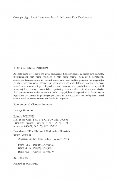 Categorii: Literatura romana, Beletristică și critică, Beletristica, Carte nefolosită, Literatura romaneasca