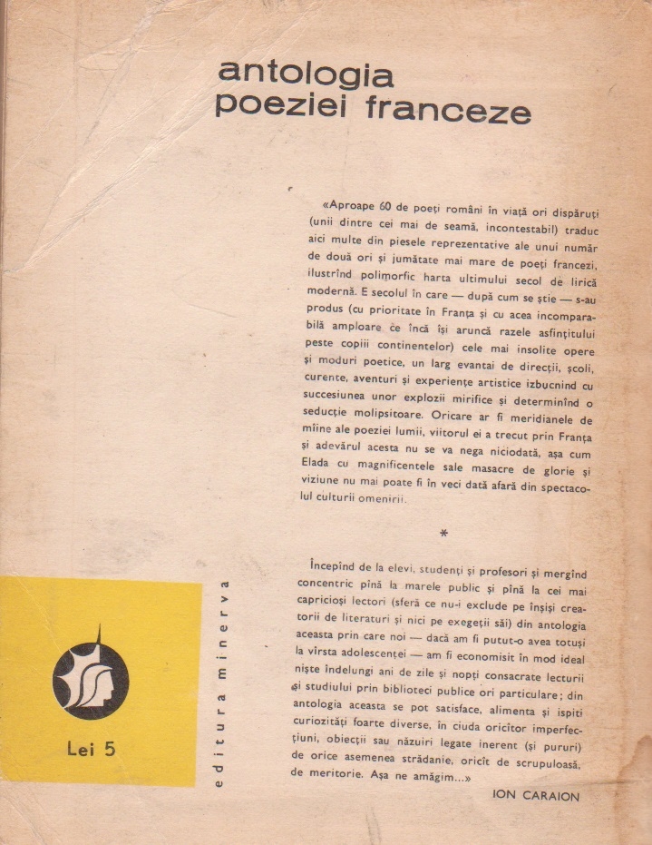 Comandă online cartea "Antologia poeziei franceze - De la Rimbaud pina azi, Volumul al II-lea" la 10,50 lei Ovid S. Crohmalniceanu , Ion Caroian, tiparită la editura Minerva face parte din colecția BPT serie noua în anul 1979. cu plata ramburs sau online cu cardul. Momentan titlul "Antologia poeziei franceze - De la Rimbaud pina azi, Volumul al II-lea" nu este disponibil însa vă puteți înscrie pentru a fi notificat în momenul reaprovizionarii.