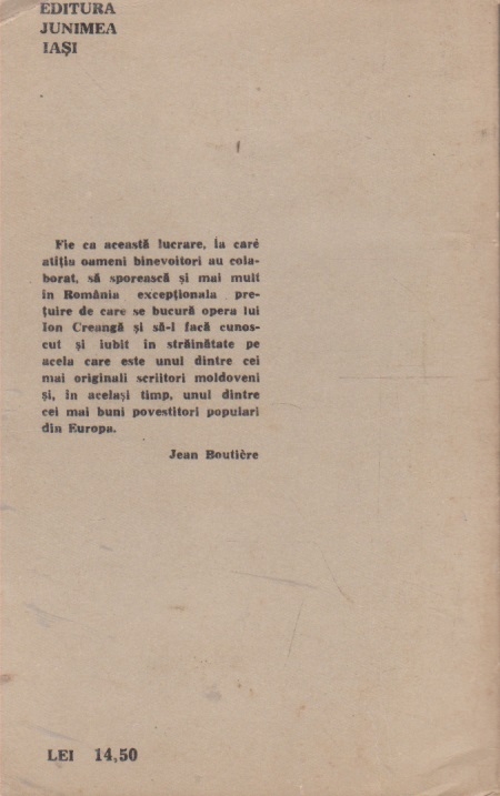 Comandă online cartea "Viata si opera lui Ion Creanga (urmate de documente epistolare privind volumul)" la 13,60 lei scrisă de Jean Boutiere, tiparită la editura Junimea în anul 1976 cu un număr de 352 pagini. cu plata ramburs sau online cu cardul. Momentan titlul "Viata si opera lui Ion Creanga (urmate de documente epistolare privind volumul)" nu este disponibil însa vă puteți înscrie pentru a fi notificat în momenul reaprovizionarii.