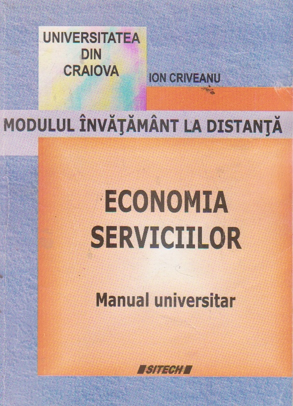Comandă online cartea "Economia serviciilor. Manual universitar. Modulul invatamant la distanta" la 10,50 lei scrisă de Ion Criveanu, tiparită la editura Sitech în anul 2011 cu un număr de 151 pagini. cu plata ramburs sau online cu cardul. Momentan titlul "Economia serviciilor. Manual universitar. Modulul invatamant la distanta" nu este disponibil însa vă puteți înscrie pentru a fi notificat în momenul reaprovizionarii.