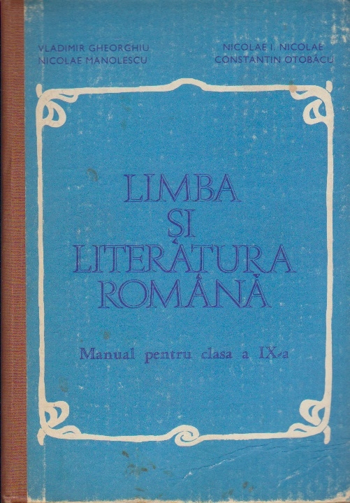 Comandă online cartea "Limba si Literatura Romana, Manual pentru clasa a IX-a" la 20,10 lei scrisă de Nicolae I. Nicolae , Nicolae Manolescu , Vladimir Gheorghiu, tiparită la editura Didactica si Pedagogica face parte din colecția Clasa a IX-a în anul 1981. cu plata ramburs sau online cu cardul. Momentan titlul "Limba si Literatura Romana, Manual pentru clasa a IX-a" nu este disponibil însa vă puteți înscrie pentru a fi notificat în momenul reaprovizionarii.