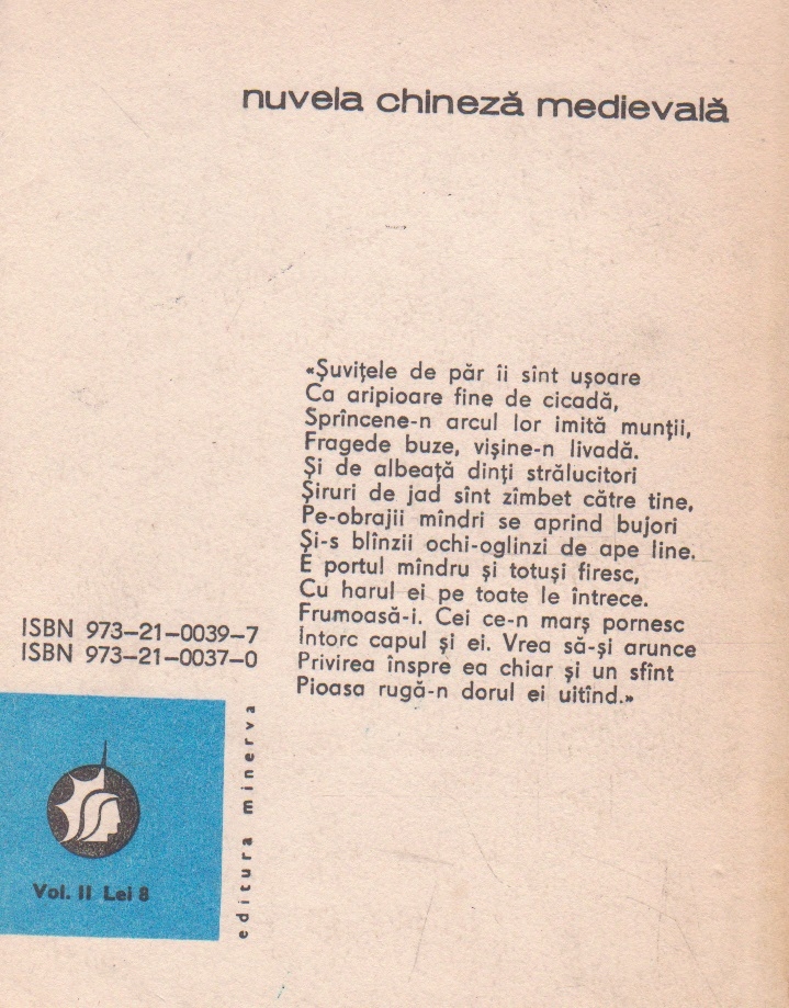 Comandă online cartea "Nuvela chineza medievala. Camasa din perle, Volumul al II-lea" la 10,50 lei Toni Radian, tiparită la editura Minerva în anul 1989 cu un număr de 284 pagini. cu plata ramburs sau online cu cardul. Momentan titlul "Nuvela chineza medievala. Camasa din perle, Volumul al II-lea" nu este disponibil însa vă puteți înscrie pentru a fi notificat în momenul reaprovizionarii.