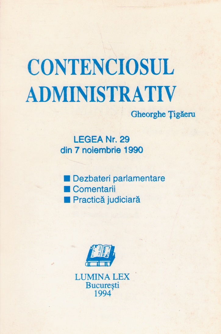 Comandă online cartea "Contenciosul administrativ. Legea nr. 29 din 7 noiembrie 1990" la 6,20 lei Gh. Tigaeru, tiparită la editura Lumina Lex în anul 1994 cu un număr de 93 pagini. cu plata ramburs sau online cu cardul. Momentan titlul "Contenciosul administrativ. Legea nr. 29 din 7 noiembrie 1990" nu este disponibil însa vă puteți înscrie pentru a fi notificat în momenul reaprovizionarii.