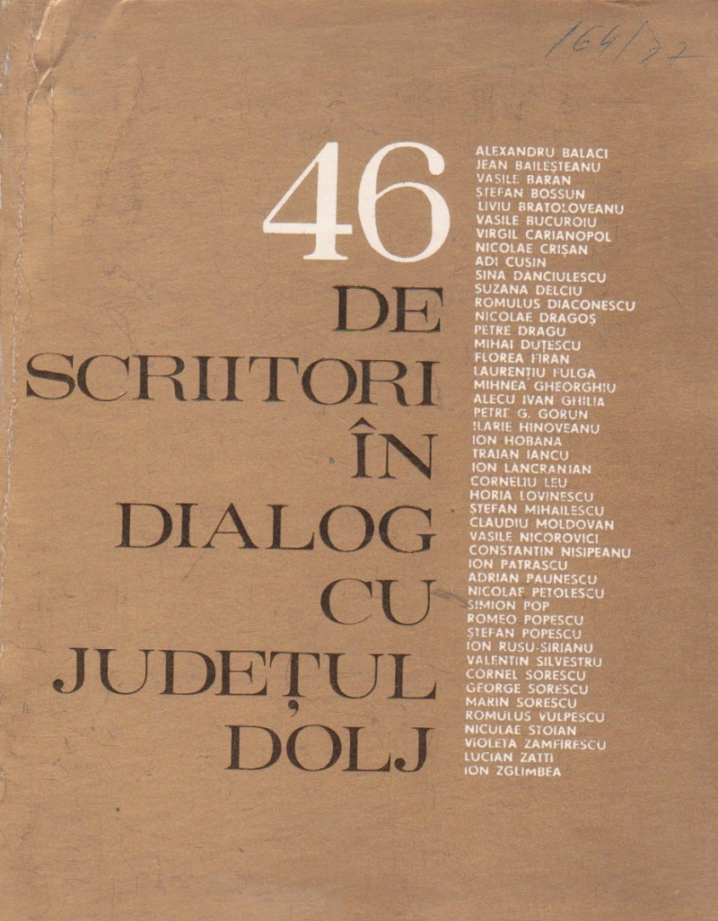 Comandă online cartea "46 de scriitori in dialog cu judetul Dolj" la 15,90 lei Florea Firan , Corneliu Leu, tiparită la editura Comitetul judetean de cultura si educatie socialista Dolj în anul 1977 cu un număr de 220 pagini. cu plata ramburs sau online cu cardul. Momentan titlul "46 de scriitori in dialog cu judetul Dolj" nu este disponibil însa vă puteți înscrie pentru a fi notificat în momenul reaprovizionarii.