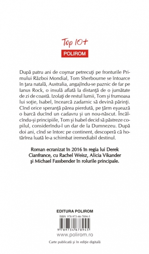 După patru ani de coşmar petrecuţi pe fronturile Primului Război Mondial, Tom Sherbourne se întoarce în ţara natală, Australia, angajîndu-se paznic de far pe Ianus Rock, o insulă aflată la distanţă de o jumătate de zi de coastă. Izolaţi de restul lumii, Tom şi frumoasa lui soţie, Isabel, încearcă zadarnic să devină părinţi. Cînd orice speranţă părea pierdută, pe ţărm eşuează o barcă ducînd un cadavru şi un nou-născut. Încălcîndu-şi principiile, Tom şi Isabel decid să păstreze copilul, considerîndu-l un dar de la Dumnezeu. După doi ani, cînd se întorc pe continent, descoperă că hotărîrea luată le-a schimbat iremediabil destinul.