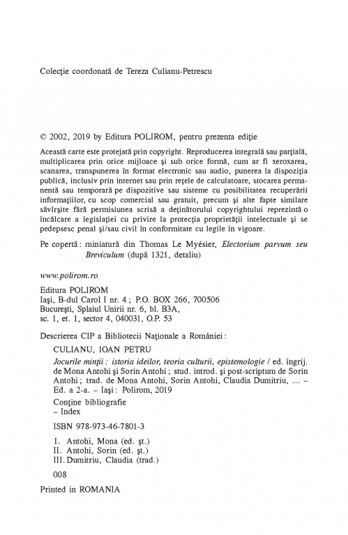 Comandă online cartea "Jocurile minții. Istoria ideilor, teoria culturii, epistemologie (ediția a II-a)" la 69,74 lei isbn 9789734678013 scrisă de Ioan Petru Culianu, tiparită la editura Polirom face parte din colecția Biblioteca Ioan Petru Culianu. cu plata ramburs sau online cu cardul. Momentan titlul "Jocurile minții. Istoria ideilor, teoria culturii, epistemologie (ediția a II-a)" nu este disponibil însa vă puteți înscrie pentru a fi notificat în momenul reaprovizionarii.