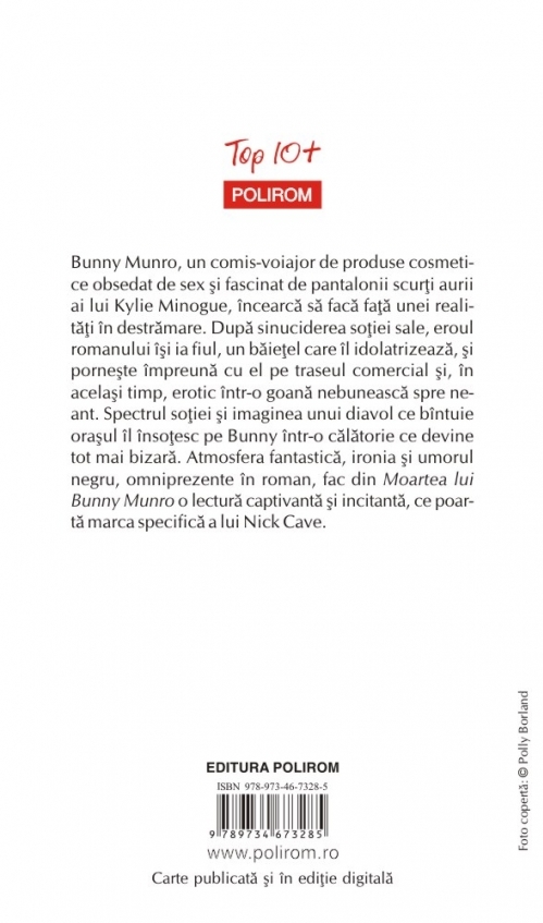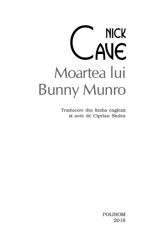 Comandă online cartea "Moartea lui Bunny Munro (ediţie de buzunar)" la 29,04 lei isbn 9789734673285 scrisă de NICK CAVE, tiparită la editura Polirom face parte din colecția Top 10+. cu plata ramburs sau online cu cardul. Momentan titlul "Moartea lui Bunny Munro (ediţie de buzunar)" nu este disponibil însa vă puteți înscrie pentru a fi notificat în momenul reaprovizionarii.