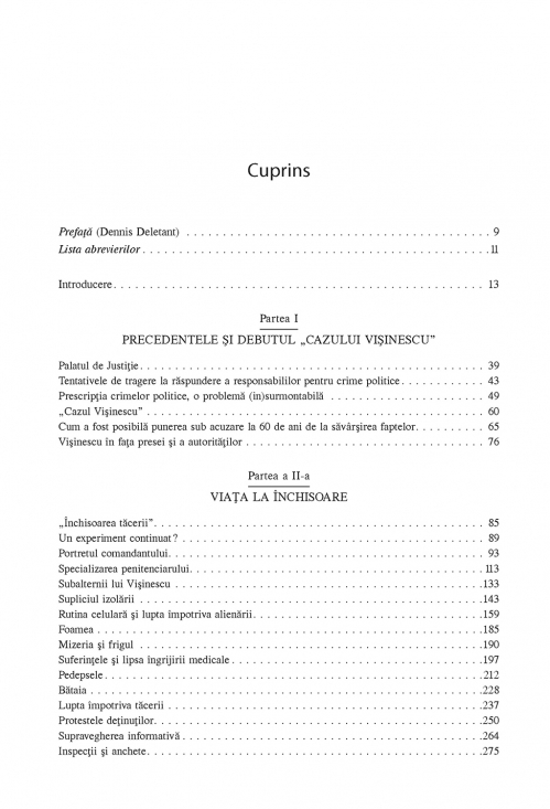 „Procesul intentat lui Alexandru Vişinescu a fost unul remarcabil întrucît se întîmpla pentru prima dată în istoria justiţiei din România ca acuzaţia de crime împotriva umanităţii comise în timpul regimului comunist să fie îndreptată împotriva unui fost comandant de închisoare. Însemnătatea cazului provine totodată şi din faptul că acuzaţiile au avut la bază cercetările neobosite ale Institutului de Investigare a Crimelor Comunismului, sub conducerea dr. Andrei Muraru. Verdictul a fost dovada că Revoluţia din 1989 i-a oferit societăţii româneşti şansa de a îmbrăţişa valorile democraţiei occidentale, valori care se bazează implicit pe ideea că natura umană caută să cultive demnitatea intrinsecă a individului, nu să o distrugă, aşa cum a încercat să facă Alexandru Vişinescu şi cum demonstrează paginile acestei cărţi.” (Dennis Deletant)