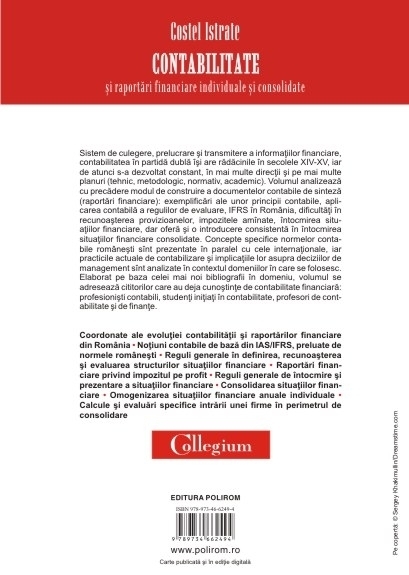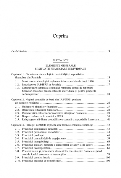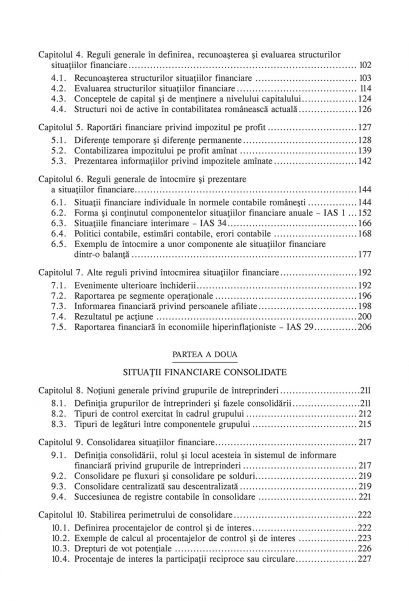 Sistem de culegere, prelucrare şi transmitere a informaţiilor financiare, contabilitatea în partidă dublă îşi are rădăcinile în secolele XIV-XV, iar de atunci s-a dezvoltat constant, în mai multe direcţii şi pe mai multe planuri (tehnic, metodologic, normativ, academic). Volumul analizează cu precădere modul de construire a documentelor contabile de sinteză (raportări financiare): exemplificări ale unor principii contabile, aplicarea contabilă a regulilor de evaluare, IFRS în România, dificultăţi în recunoaşterea provizioanelor, impozitele amînate, întocmirea situaţiilor financiare, dar oferă şi o introducere consistentă în întocmirea situaţiilor financiare consolidate. Concepte specifice normelor contabile româneşti sînt prezentate în paralel cu cele internaţionale, iar practicile actuale de contabilizare şi implicaţiile lor asupra deciziilor de management sînt analizate în contextul domeniilor în care se folosesc. Elaborat pe baza celei mai noi bibliografii în domeniu, volumul se adresează cititorilor care au deja cunoştinţe de contabilitate financiară: profesionişti contabili, studenţi iniţiaţi în contabilitate, profesori de contabilitate şi de finanţe.