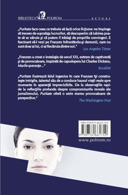 „Puritate face ceea ce trebuie sa faca orice fictiune: ne impinge sa trecem de suprafata lucrurilor, sa descoperim ca iubirea poate sa se naruie si ca putem fi tradati de propriile convingeri. E fascinant sa-l vezi pe Franzen infruntindu-si demonii, care nu sint doar ai lui, ci ai fiecaruia dintre noi.” (Los Angeles Times)