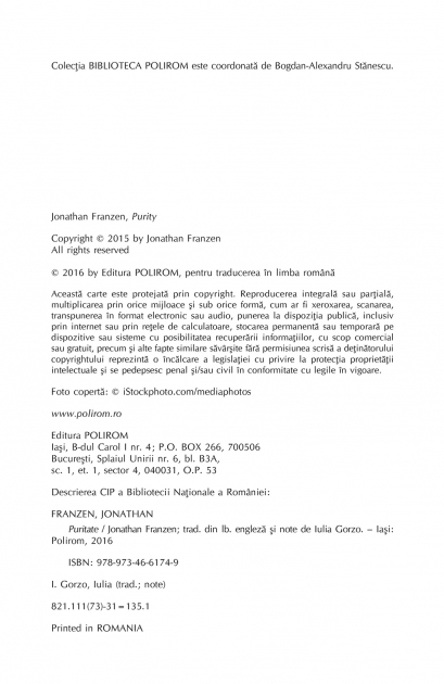 Actual. cu plata ramburs sau online cu cardul. Momentan titlul "Puritate" nu este disponibil însa vă puteți înscrie pentru a fi notificat în momenul reaprovizionarii.">