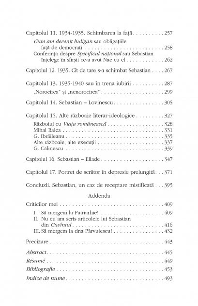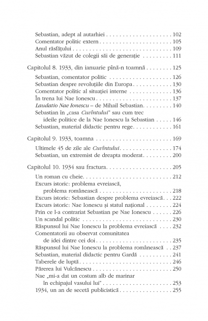 Centrata pe publicistica politica a lui Sebastian si pe psihologia tinarului scriitor – ce l-a fixat afectiv, ca pe-o iedera, de Nae Ionescu si de Eliade –, cartea examineaza rolul pe care l-a avut Nae Ionescu in formarea discipolului sau si cit de tare a fost influentat invatacelul de ideile politice si filosofice ale maestrului. De pe urma acestei cercetari, facute in presa anilor 1927-1936, autoarea demonstreaza ca Mihail Sebastian a fost (ca mai tirziu Cioran, Eliade, Noica s.a.) un reprezentant al aripii de extrema dreapta a generatiei sale, generatia ’27.
