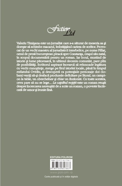 Valeriu Timisana este un jurnalist care s-a saturat de meseria sa si doreste sa schimbe macazul, imbratisind cariera de scriitor. Provocat de un vechi maestru al jurnalisticii interbelice, pe nume Pillat, omul de presa bucurestean pleaca spre Constanta, orasul sau natal, in scopul documentarii pentru un roman. Iar locul, mustind de istorie si lume pitoreasca, in ultimul deceniu comunist, pare plin de posibilitati. Scriitorul aspirant incearca sa reinnoade legatura cu vechi cunostinte, merge pe firul istoriei locale, pina in timpul exilatului Ovidiu, si descopera ca potentiale personaje doi ciobani veniti sa-si desfaca produsele deficitare pe litoral, un campion la table, un oberchelner si chiar un iluzionist. Cu toate acestea, ceva pare sa nu se lege... La capatul noptii este un roman reusit despre incercarea nereusita de a scrie un roman, o poveste incarcata de umor si ironie fina.