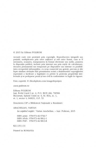 Comandă online cartea "La capătul nopții" la 10,60 lei isbn 9789734657667 scrisă de Vartan Arachelian, tiparită la editura Polirom face parte din colecția Fiction Ltd. cu plata ramburs sau online cu cardul. Momentan titlul "La capătul nopții" nu este disponibil însa vă puteți înscrie pentru a fi notificat în momenul reaprovizionarii.
