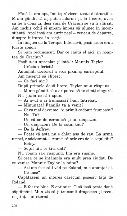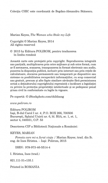 Traducere din limba engleza de Ines Hristea Stella Sweeney se considera o femeie obisnuita, care duce o viata normala alaturi de sot si de cei doi copii, cistigindu‑si traiul impreuna cu sora ei, dintr‑un salon de infrumusetare. Intr‑o zi, Stella se imbolnaveste grav si ajunge la spital, unde va ramine citeva luni, cu totul paralizata si capabila sa comunice doar din priviri. Cind isi revine, Stella afla ca neurologul care o trateaza, doctorul Mannix Taylor, a scris, folosindu‑i numele, o carte inspirata de viata si de boala ei, carte care acum e citita de insasi sotia vicepresedintelui Statelor Unite. Pe masura ce legatura Stellei cu doctorul Taylor se complica si casnicia i se destrama, lumea femeii este data peste cap. Stella se lupta sa‑si pastreze echilibrul emotional si se trezeste in fata unor decizii imposibile, care o vor purta dincolo de ocean, la New York, si o vor transforma peste noapte in vedeta. „Prin romanul sau, Marian Keyes te convinge ca poti face orice-ti trece prin cap, daca soarta nu iti e potrivnica.” (The Express) „O placere s-o citesti. O explorare inteligenta si onesta a unei teme favorite a lui Keyes: optimismul.” (Cleveland Plain Dealer) „Inteligenta feminina a romanelor ei, scrisul plin de spirit si stilul vioi au facut din Marian Keyes o scriitoare pretuita in toata lumea.” (Chicago Tribune)