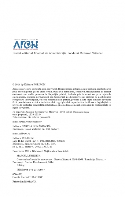 Proiect editorial finanţat de Administraţia Fondului Cultural Naţional