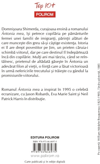 Domnisoara Shimerda, curajoasa eroina a romanului Antonia mea, isi petrece copilaria pe paminturile fermei unei familii de imigranti, parintii alaturi de care munceste din greu sa-si cistige existenta. Istoria ei il are drept povestitor pe Jim, un prieten caruia-i schimba viitorul, dar pe care destinul il indeparteaza inca din copilarie. Multi ani mai tirziu, cind se reintilnesc, prietenul de altadata gaseste in Antonia un adevarat filon al vietii, o fiinta care a lasat victorioasa in urma nefericirile trecutului si traieste cu gindul la promisiunile viitorului.