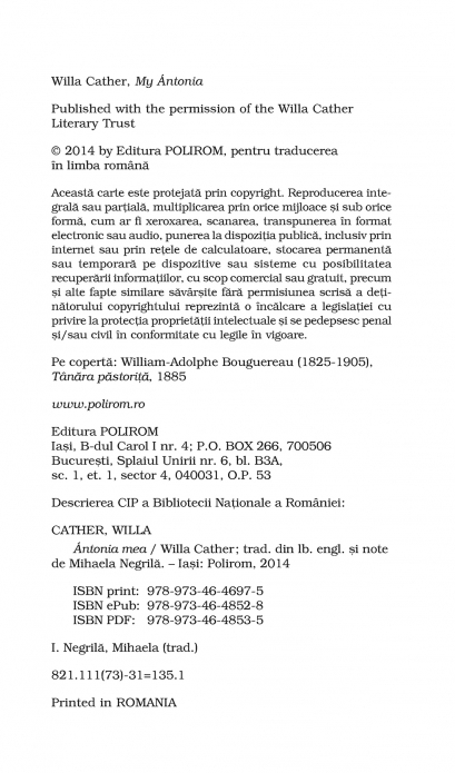 Comandă online cartea "Antonia mea (ediţie de buzunar)" la 10,60 lei isbn 9789734646975 scrisă de Willa Cather, tiparită la editura Polirom face parte din colecția Top 10+. cu plata ramburs sau online cu cardul. Momentan titlul "Antonia mea (ediţie de buzunar)" nu este disponibil însa vă puteți înscrie pentru a fi notificat în momenul reaprovizionarii.