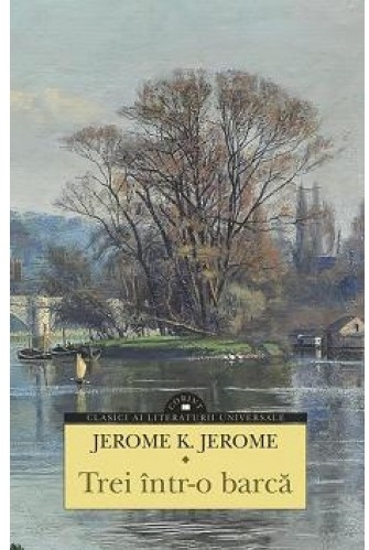 În acest jurnal de călătorie pe apele Tamisei, Jerome K. Jerome infirmă toate prejudecăţile referitoare la ironia englezească (prea puţin spectaculoasă) şi la epoca victoriană (conformistă şi sobră). Cartea îşi datorează succesul şi longevitatea umorului spumos cu care sunt evocate peripeţiile a trei londonezi pentru care o călătorie de plăcere pe fluviu capătă proporţiile unei expediţii aventuroase, plină de neprevăzut. Stilul unic al lui Jerome şi spiritul său de observaţie, care i-au captivat pe contemporanii scriitorului, transformă Trei într-o barcă într-un roman clasic al genului, la fel de surprinzător şi pentru cititorii zilelor noastre. „Trei într-o barcă este un studiu despre prietenie, slăbiciunile şi maniile omeneşti şi iertare. Să o reciteşti e ca atunci când te aşezi lângă foc pentru a pălăvrăgi cu un unchi excentric care a văzut totul, a făcut totul, dar care tot e gata să râdă de sine însuşi.” – The Independent