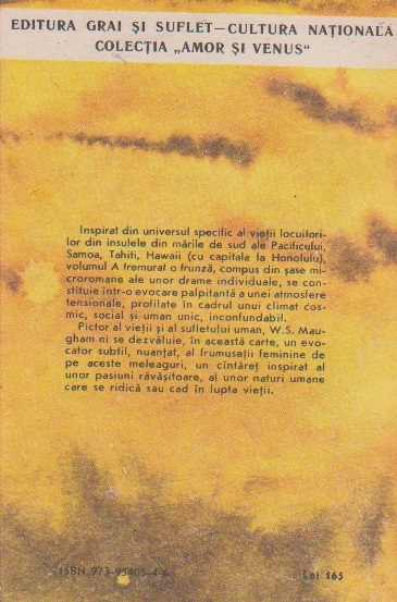 Comandă online cartea "A tremurat o frunza" la 10,50 lei scrisă de W Somerset Maugham, tiparită la editura Cultura Nationala în anul 1991 cu un număr de 256 pagini. cu plata ramburs sau online cu cardul. Momentan titlul "A tremurat o frunza" nu este disponibil însa vă puteți înscrie pentru a fi notificat în momenul reaprovizionarii.