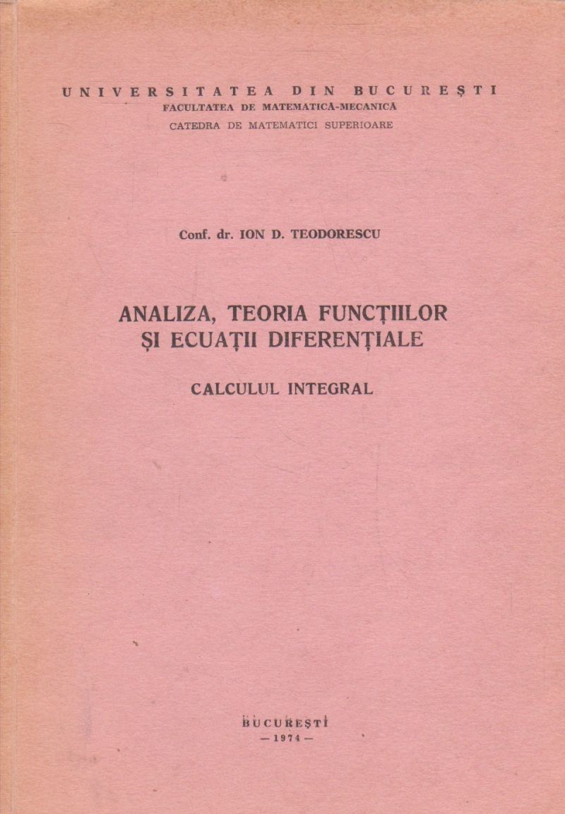 Comandă online cartea "Analiza, teoria functiilor si ecuatii diferentiale. Calculul integral" la 30,70 lei scrisă de Ion D. Teodorescu, tiparită la editura Universitatea din Bucuresti în anul 1974 cu un număr de 306 pagini. cu plata ramburs sau online cu cardul. Momentan titlul "Analiza, teoria functiilor si ecuatii diferentiale. Calculul integral" nu este disponibil însa vă puteți înscrie pentru a fi notificat în momenul reaprovizionarii.