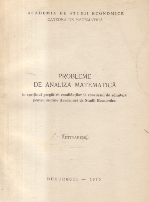 Comandă online cartea "Probleme de analiza matematica in sprijinul candidatilor la concursul de admitere pentru sectiile Academiei de Studii Economice" la 15,90 lei scrisă de Academia de Studii Economice, tiparită la editura Bucuresti în anul 1975 cu un număr de 206 pagini. cu plata ramburs sau online cu cardul. Momentan titlul "Probleme de analiza matematica in sprijinul candidatilor la concursul de admitere pentru sectiile Academiei de Studii Economice" nu este disponibil însa vă puteți înscrie pentru a fi notificat în momenul reaprovizionarii.