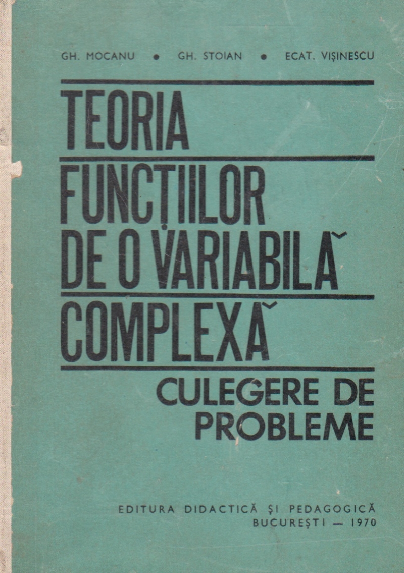 Comandă online cartea "Teoria functiilor de o variabila complexa. Culegere de probleme" la 41,20 lei scrisă de Gheorghe Mocanu, tiparită la editura Didactica si Pedagogica în anul 1970 cu un număr de 400 pagini. cu plata ramburs sau online cu cardul. Momentan titlul "Teoria functiilor de o variabila complexa. Culegere de probleme" nu este disponibil însa vă puteți înscrie pentru a fi notificat în momenul reaprovizionarii.
