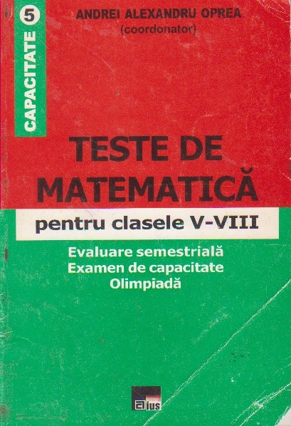 Comandă online cartea "Teste de matematica pentru clasele V - VIII (evaluare semestriala, examen de capacitate, olimpiada)" la 6,20 lei scrisă de Andrei Alexandru Oprea, tiparită la editura Aius în anul 1999 cu un număr de 104 pagini. cu plata ramburs sau online cu cardul. Momentan titlul "Teste de matematica pentru clasele V - VIII (evaluare semestriala, examen de capacitate, olimpiada)" nu este disponibil însa vă puteți înscrie pentru a fi notificat în momenul reaprovizionarii.