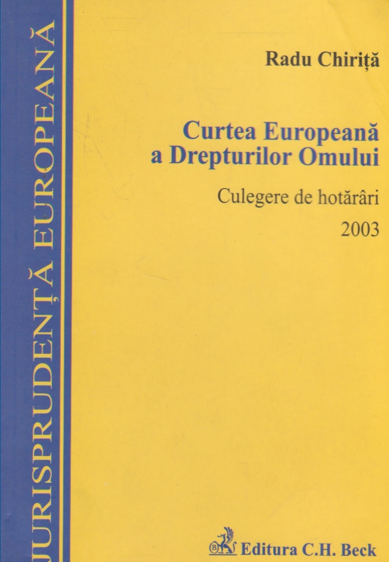 Comandă online cartea "Curtea Europeana a Drepturilor Omului. Culegere de hotarari pe 2003" la 15,90 lei scrisă de Radu Chirita, tiparită la editura CH Beck în anul 2007 cu un număr de 264 pagini. cu plata ramburs sau online cu cardul. Momentan titlul "Curtea Europeana a Drepturilor Omului. Culegere de hotarari pe 2003" nu este disponibil însa vă puteți înscrie pentru a fi notificat în momenul reaprovizionarii.